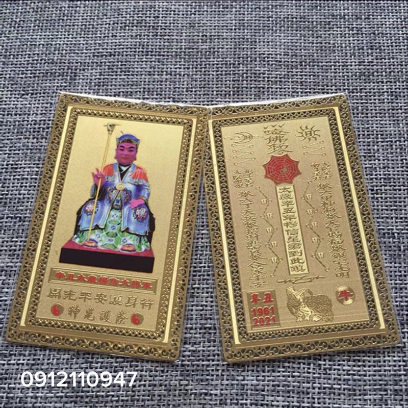 Thẻ đồng kim bài Thái Tuế Ý nghĩa: - kim bài Thái Tuế làm bằng đồng mạ vàng á kim, kt 4x8cm, đã được gia trì - tránh tất cả các phạm của năm tuổi, bảo hộ thị phi mất mát, tăng trưởng tài lộc may mắn - bỏ ví mang theo người