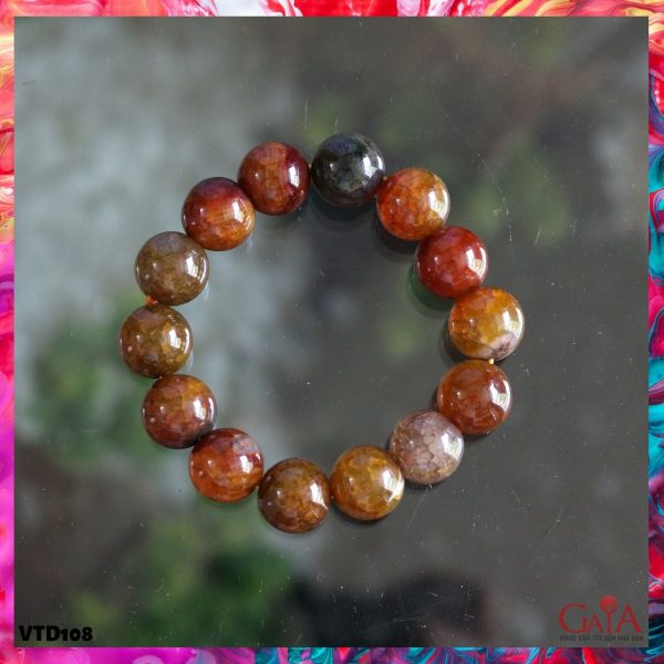 Vòng tay đá mã não vảy rồng. Chất liệu: đá mã não tự nhiên 100%. Kích cỡ hạt: 14ly. Loại đá vảy rồng bên trong nhìn rất đẹp, có thể thông đèn nhìn rõ đường vân bên trong. Sản phẩm có hộp đựng. Đối với vòng tay phong thuỷ, không cần xét mệnh, ai cũng có thể đeo được vì năng lượng từ đá tự nhiên rất tốt cho người đeo. Lưu ý: hàng đá tự nhiên 100% nên giữa vòng khác nhau hay những viên đá khác nhau trên cùng 1 vòng sẽ khác nhau, không có vòng nào hay viên nào giống viên nào. Đây là đặc tính của hàng đá tự nhiên giúp dễ dàng nhận biết, phân biệt với hàng bột đá đúc.