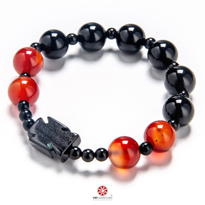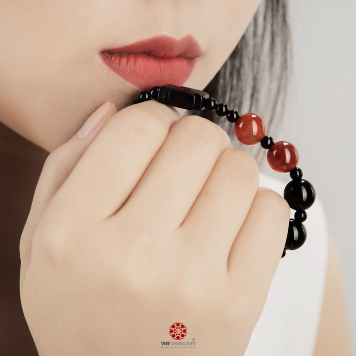 Chuỗi mân côi mã não đen mix mã não đỏ 10mm AGA02 hỗ trợ cho người mệnh Thủy